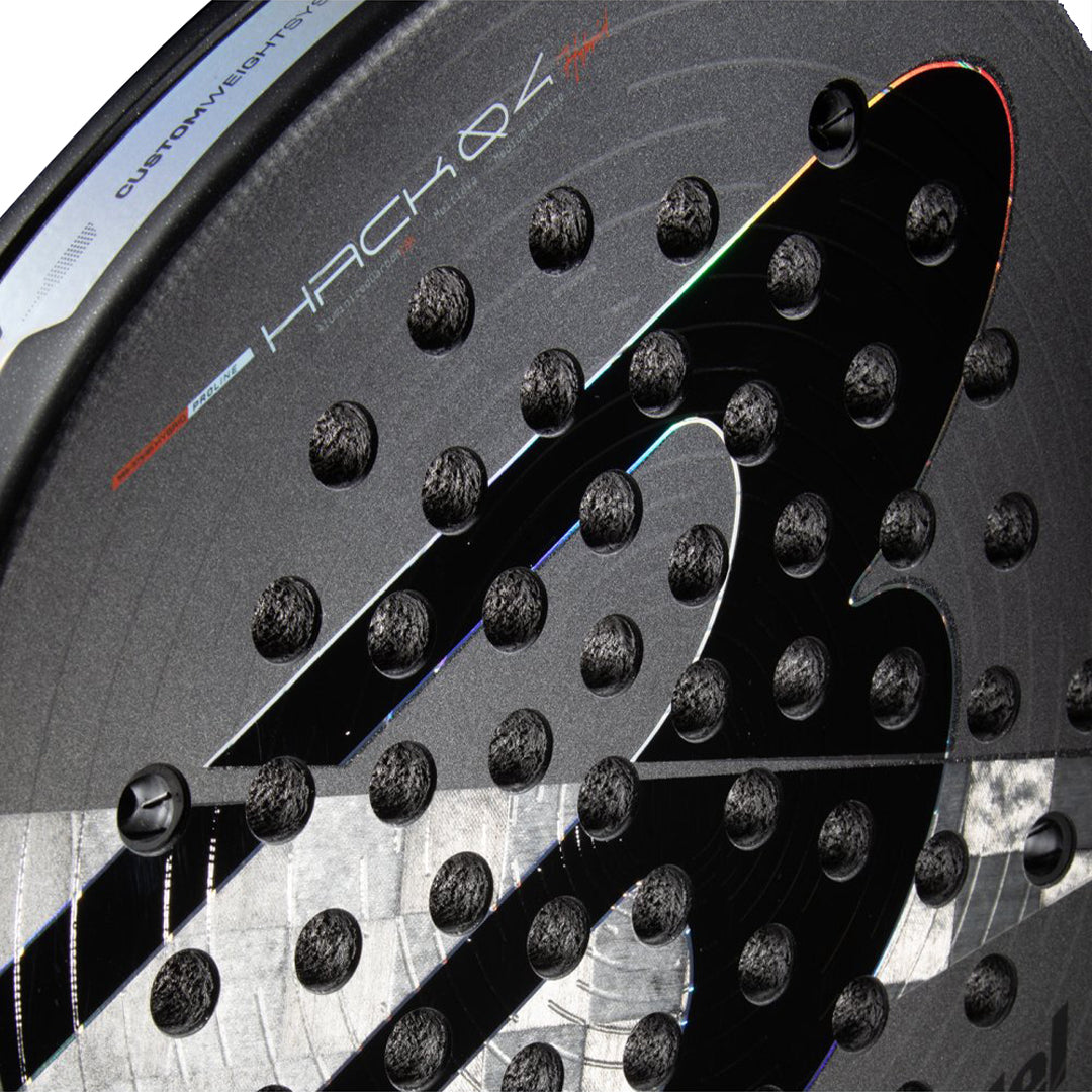 HACK 04 Hybrid , a racket designed with Total Channel technology and a triple bridge at the heart. This hybrid format makes it the ideal choice for players looking to dominate the counterattack, combining control with power. With the HACK 04 Hybrid , you'll unleash a storm with every move, taking full advantage of its responsiveness.