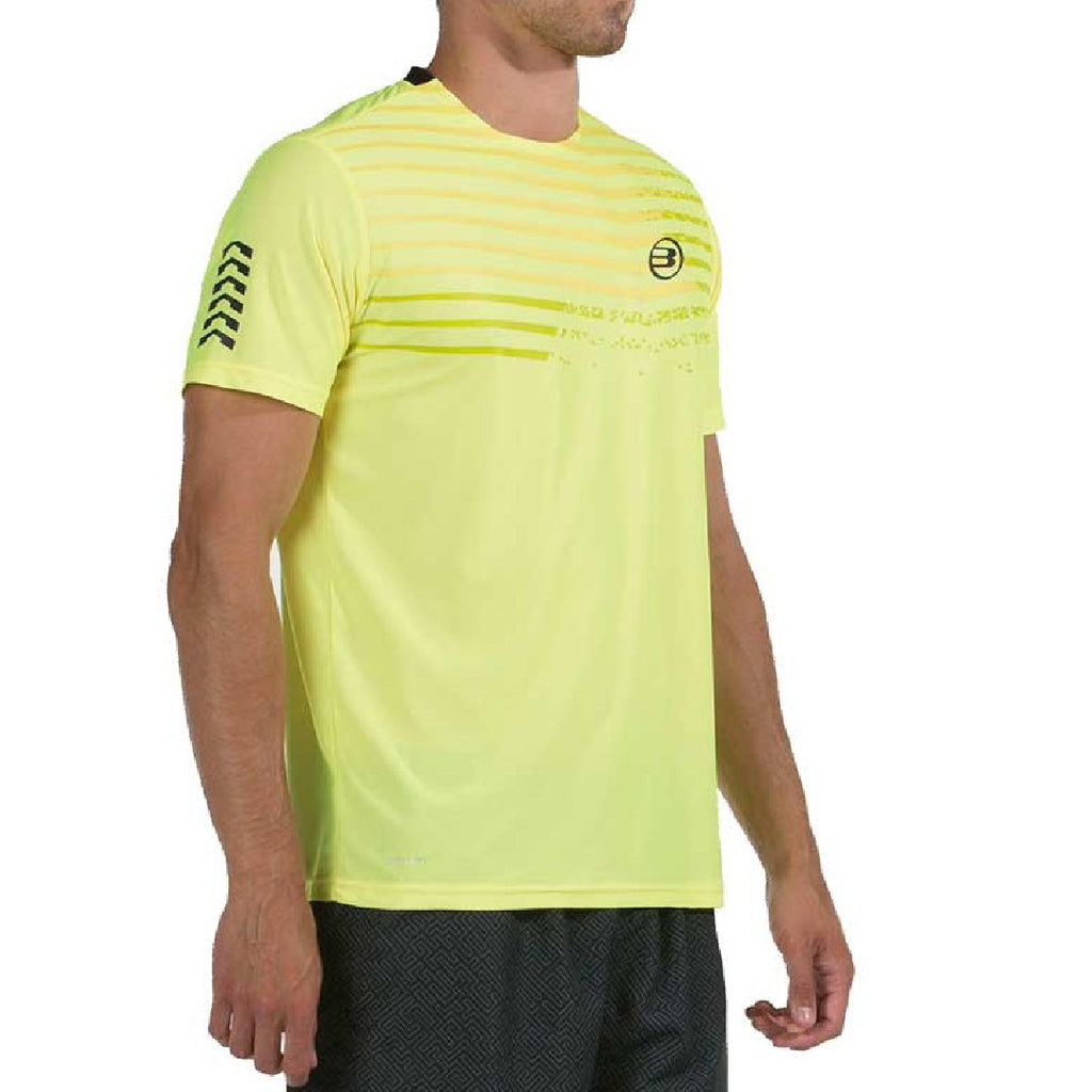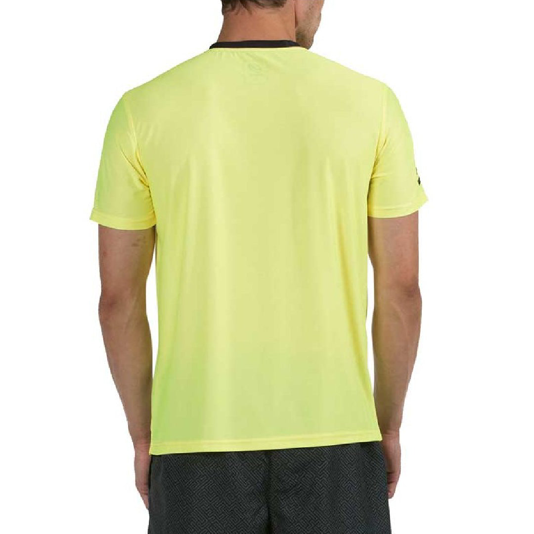 T-shirt for padel Bullpadel Cumbal Flourescent Lemon Yellow finish of this Bullpadel shirt for men, a technical fabric garment that provides greater comfort and freshness to athletes.