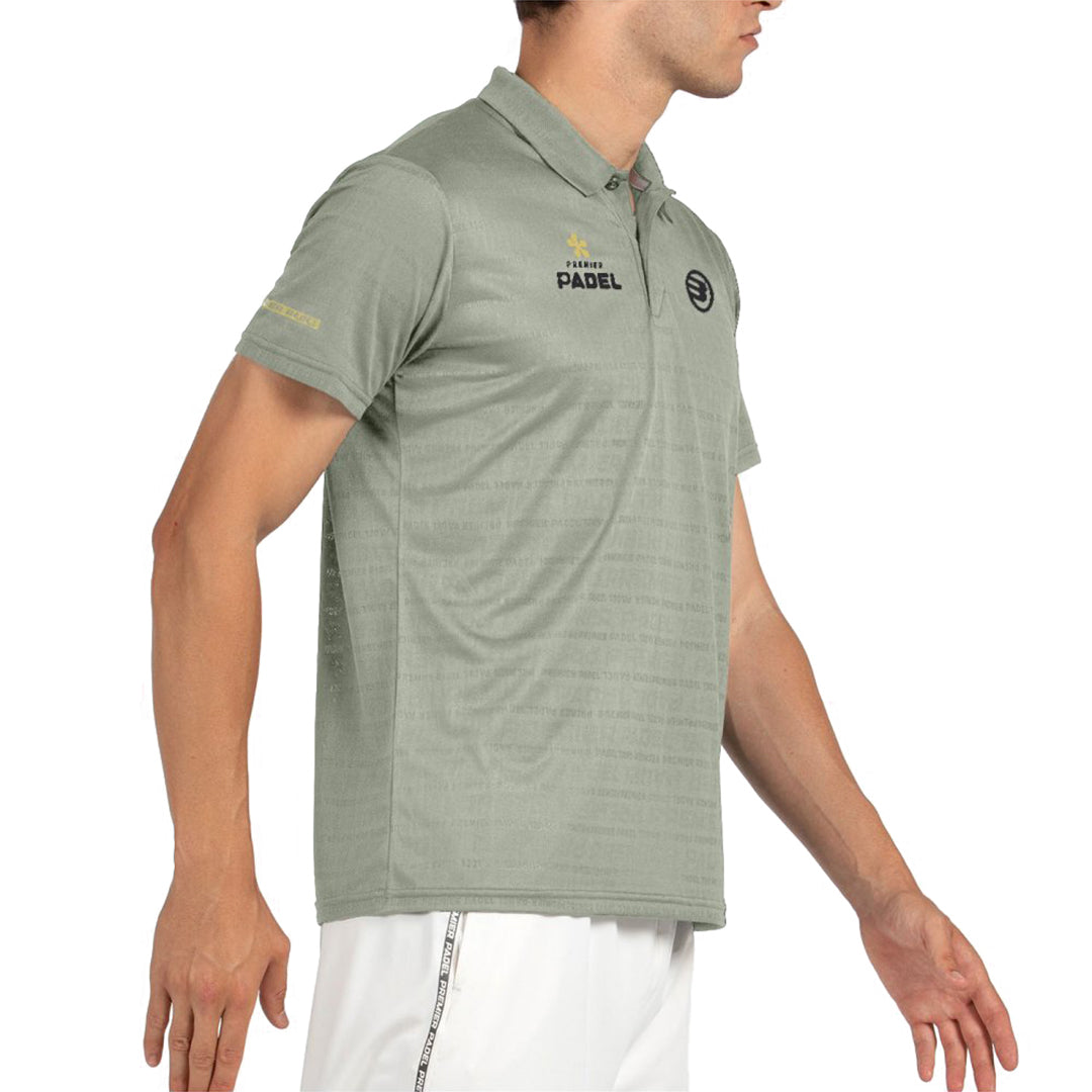 Premier Padel technical polo shirt. This polo shirt combines performance and sophistication in every detail. Made from custom jacquard fabric with a quick-drying finish, it helps reduce moisture and improve breathability, keeping you dry and comfortable throughout the game. Its classic short-sleeved design with a button placket and self-fabric collar provides a clean and modern look. Exclusive Premier Padel graphics complete a garment that reflects style, technology, and a competitive spirit both on and off the court.